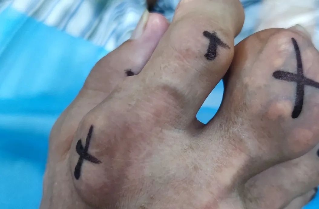 王先生是因为代谢问题,由于尿酸生成过多以及尿酸排泄很少,导致王先生的血尿酸值长期超标。王先生发生痛风后没有太过重视,以为自己只要吃了药就行了,结果王先生不仅不进行饮食控制和生活管理,就连吃药也是想起来才吃,这使得王先生痛风没几年就长出了痛风石。痛风石才出现时我建议王先生做手术清除,结果王先生还是我行我素,认为自己能控制好病情。4年时间中痛风石越长越大,几乎已经侵蚀了手部所以关节,现在想做手术也非常难,这时王先生才是真的后悔了。