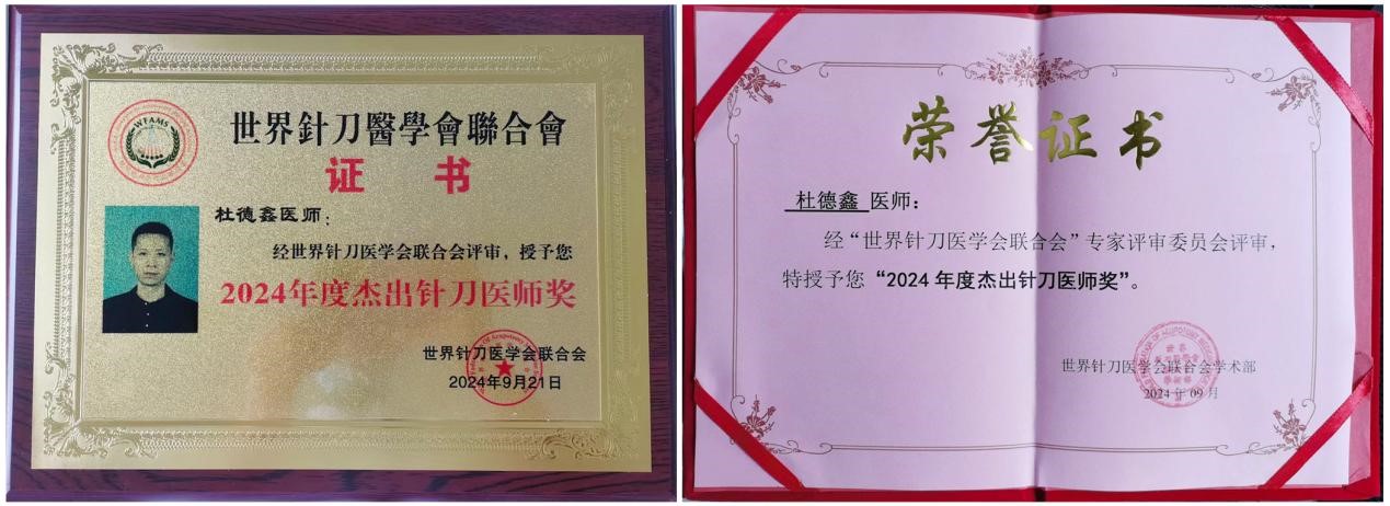 杜德鑫主任荣获2024年度杰出针刀医师奖